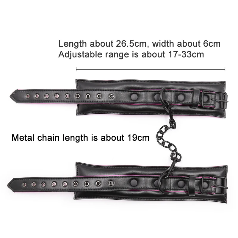 Crafted from premium leather and heavy-duty iron, these handcuffs are built for durability. The materials are skin-friendly for safe use during extended sessions. Each link is securely fastened to ensure the restraints hold firm during intense couple games and bondage scenarios.