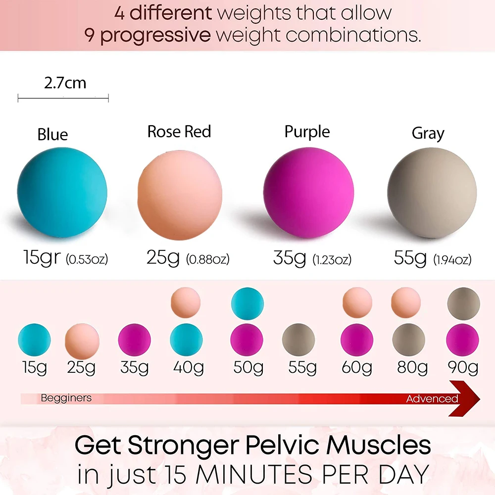 Progressive Weight System: Four distinct balls allow for gradual pelvic floor training.