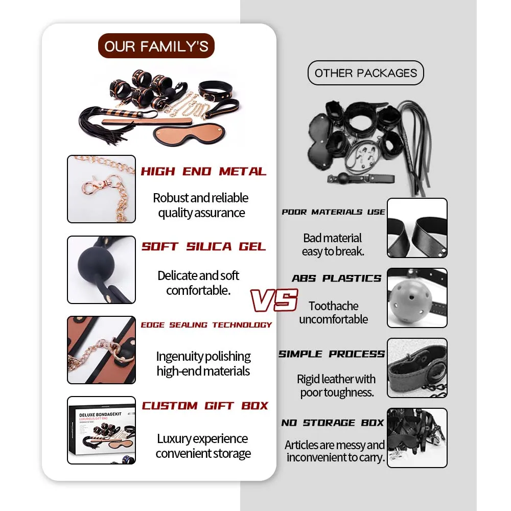 This set is designed for adults seeking to explore power dynamics and physical restraints within a safe, consensual environment.