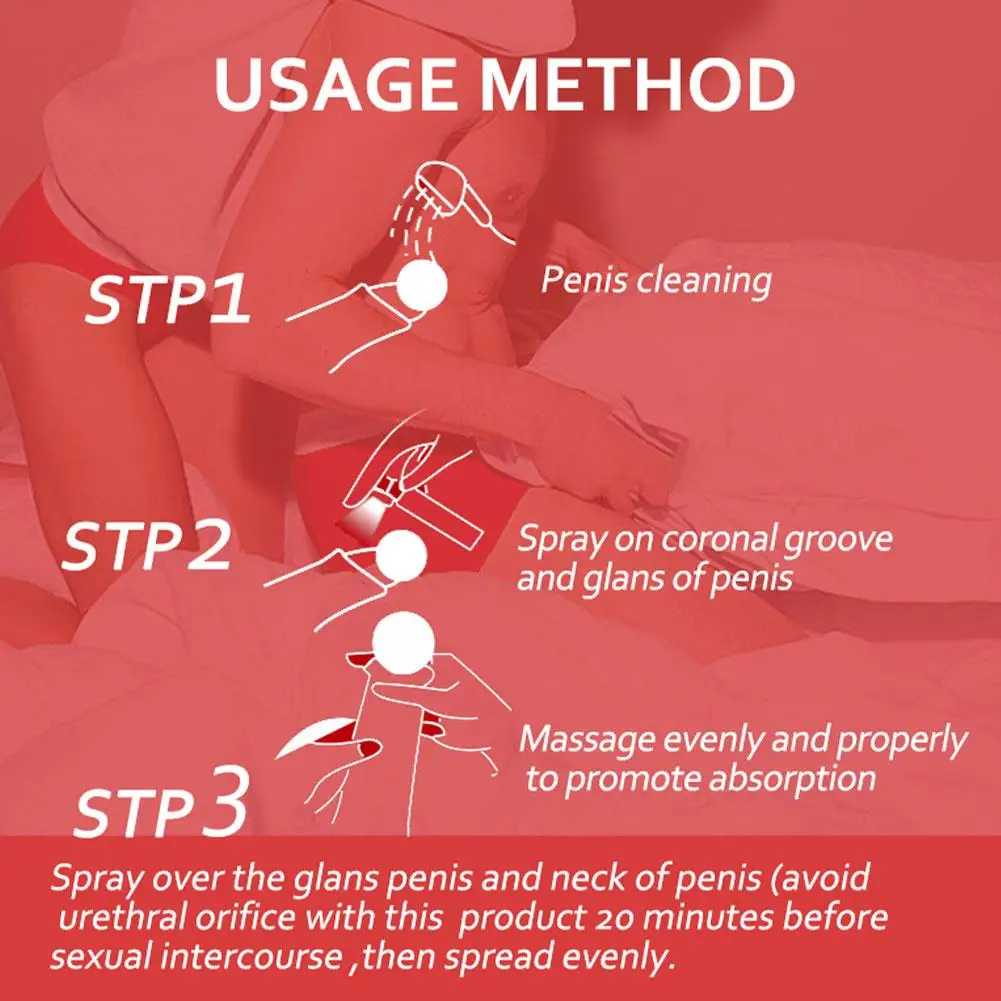 Apply a few sprays to the desired area 10-15 minutes before intimacy. Wipe off any excess. Store the 10ml bottle in a cool, dry place away from direct sunlight. Keep the cap tightly closed when not in use to ensure the formula stays fresh.