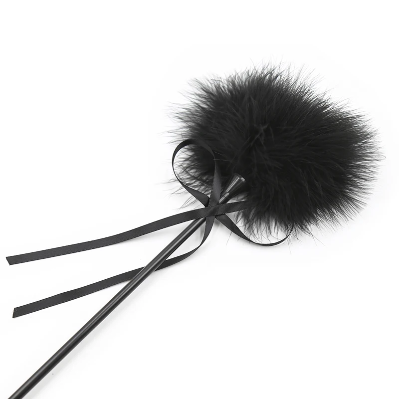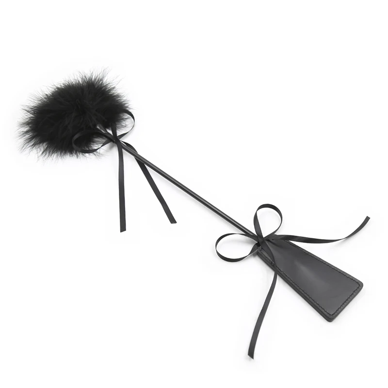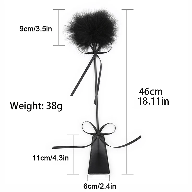 Use the feather for light teasing and the leather whip for firm impact. To clean, wipe the PU leather with a damp cloth and gently shake the feathers. Store in a cool, dry place away from direct sunlight to maintain the material integrity.