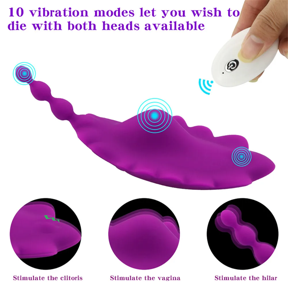 This wearable butterfly panties wireless vibrator combines a love egg vagina massager with G spot and clitoris stimulation. Designed for women, it fits discreetly as a panty-style device, offering wireless vibration for targeted internal and external pleasure.